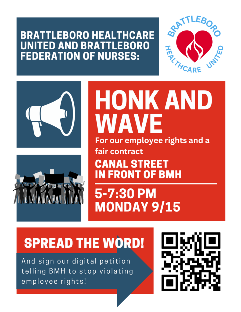 Brattleboro Healthcare United & Federation of Nurses Honk and Wave for Employee Rights & A Fair Contract